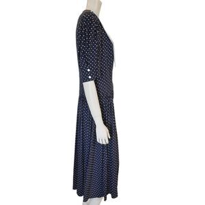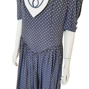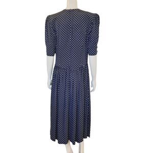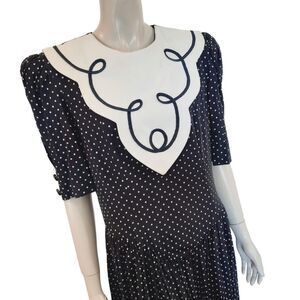 vintage 80s dress, puff sleeve dress, bib collar dress, vintage princess waist dress, retro navy dress vintage midi dress, 1980s fashion dress, vintage dramatic collar dress, vintage medium dress, 90s puff sleeve dress, retro statement collar dress, vintage office dress, 80s classic dress, navy and white vintage dress, vintage cottagecore dress, 80s grunge outfit idea, vintage feminine dress, 1990s vintage fashion dress