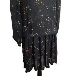 Vintage 80s Drop Waist Mini Dress Peter Pan Collar Sheer Floral Black Womens 10