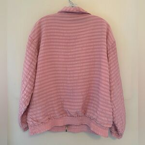 Vintage 80's EVR Pink Silk Striped Oversized Full Zip Sports Bomber Jacket M