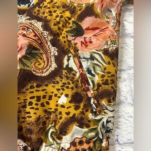Elevate your style with this vibrant bomber jacket featuring a stunning floral paisley design. Fully lined and has removable shoulder pads. The rich brown and pink hues add a touch of elegance to any outfit.