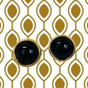 Pre-Owned Excellent Vintage Condition Modern Revivalist Minimalist Bold Black Gold Tone Trim Round Clip On 1980s Earrings