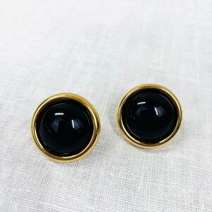 Large round jet black with gold-tone trim - Chunky clip on earrings