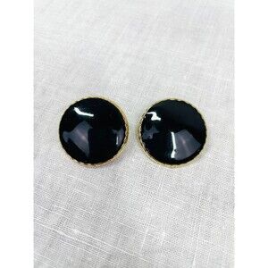 Pre-Owned Excellent Vintage Condition Modern Glam Minimalist Bold Black Gold Resin/Enamel Shiny Clip On Earrings 1980s Earrings Round Modern Glam VTG 80s