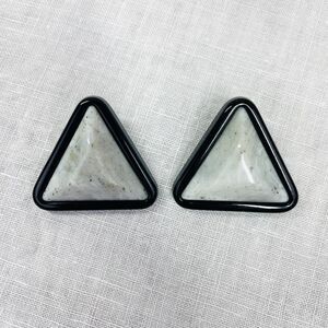 Pre-Owned Excellent Vintage Condition Modern Revivalist Minimalist Bold Gray Black Resin Clip On Earrings 1980s Earrings Triangle Modern VTG