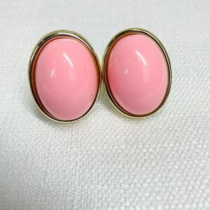 Large oval domes in pink with gold-tone trim - Chunky clip on earrings