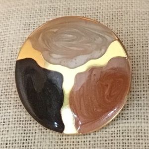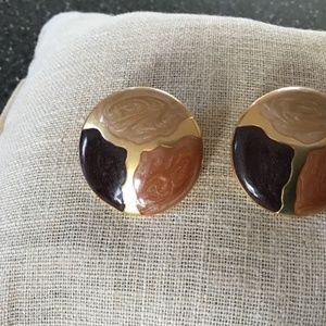 These creamy vintage pierced earrings offer swirls of earth tone colors, separated by gold tone accents.