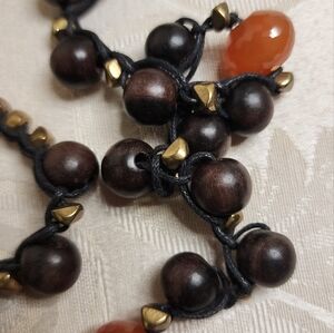Vintage 80s Eclectic Brown Wooden and Orange Glass Beaded Necklace