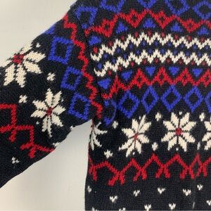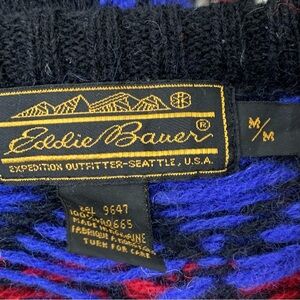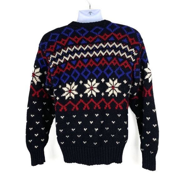 Vintage 80s Eddie Bauer 100% Wool Sweater Fair Isle Ski Men M Black Label Nordic