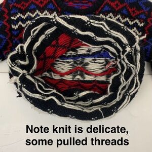 Very good condition, light wear. Interior yarn is delicate, there are some pulled threads. Please see all photos and measurements to ensure fit.