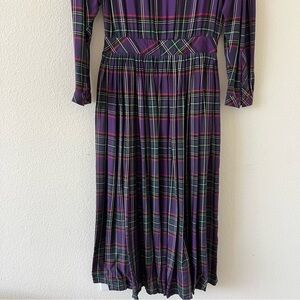 Vintage 80s Eileen West Plaid Pleated Maxi Dress Cottagecore SZ 10 (Modern S)