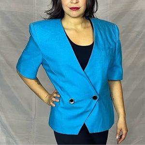 This 80s vintage vibrant blue button top is a showstopper! The bold and rich shade of blue is eye-catching and perfect for making a statement. The button-down style adds a classic touch while the vibrant color brings a fresh and fun twist. The lightweight and breathable fabric makes it comfortable to wear all day long. With its retro style and bold color, this top is the perfect addition to any fashion-forward wardrobe. It's the perfect way to add some vintage vibe to your modern look!