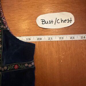 Vintage 80s Embroidered Floral Patchwork Vest By Casey & Max In Navy & Red Plaid