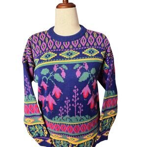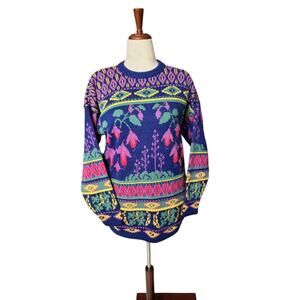 Vintage 80's Emerald Isle Colorful Knit Crewneck Sweater size medium Ireland