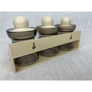 Vintage 80s Emsa Set of 3 Smoke Gray Acrylic Spice Jar Beige Shelf MCM Mod