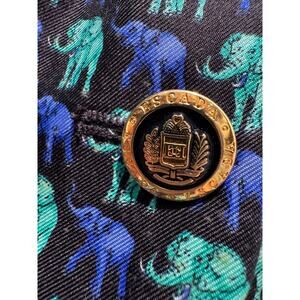 Vintage 80s Escada Womens Vest Silk Size 34 Elephant Print Margaretha Blue Black