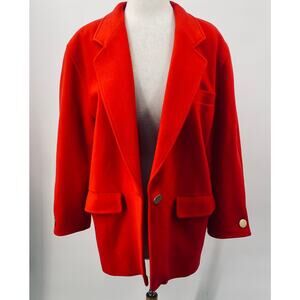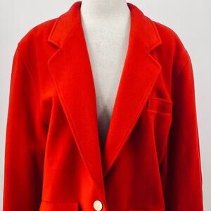 Vintage 80s Escada Wool Blazer Coat Jacket Oversized Gold Buttons Red Womens
