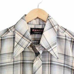 Vintage 80s Esprit By Campus Plaid Western Shirt Button Up Short Sleeve 16L 16.5