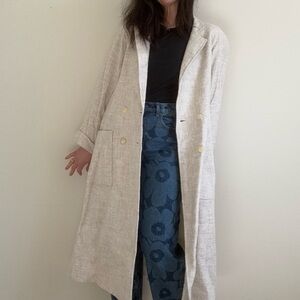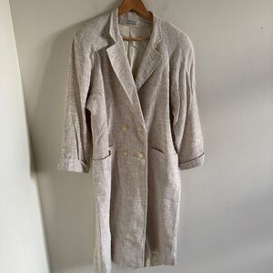 Vintage 80s Ethel Pear for One Up Linen Burlap Overcoat Double Breasted