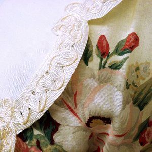 Vintage 80's Floral Secretary Granny Prairie Dress, Expo Made in USA, marked Ladies -10(M), Scalloped Ribbon Lace pilgrim Collar, V-Neck Wrap-over Neckline, Relaxed fit Bodice, gathered Puffy short 1/2 Sleeves with extra padded tulle puffed shoulder pads, fitted elastic comfort waist wrap button/snaps waistband closure, Midi - ankle length gathered full circle skirt, Dry Clean Rayon lightweight fabric in muted victorian shades of Floral Cream Pinks Greens. In excellent pre-owned* condition appears new - never worn/never washed -see pics for details. Cottage Prairie, Career Secretary, Victorian Lace, Preppy Academia, Lace Collar, Grandma Chic, Country Western, Farm Church, Special Occasion, Mom Favorite, Easter Garden Tea, Special Occasion, Romantic, Runway On Trend, Street Chic,
