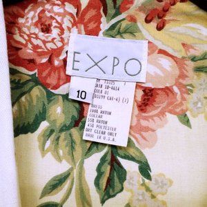 Vintage 80s Expo USA Floral Prairie Dress Lace Collar M(10) Puffed Shoulder Pads