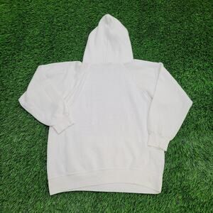 Vintage 80s FDU Fairleigh Dickinson University Hoodie Womens 2XS/XS 19x21 White Raglan Baggy Crop USA Made Cotton Poly Fleece Lightweight