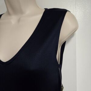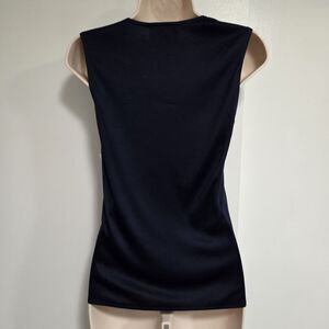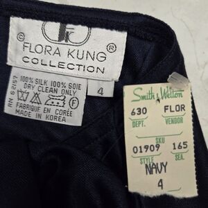 Vintage 80's FLORA KUNG Size 4 True Navy Blue 100% Silk V-neck Tank Top NEW