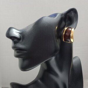 Add a pop of retro glam to your look with these stunning vintage 1980s clip-on earrings by FLP (First Light Products). These bold earrings feature a rich gold-tone finish with deep brown enamel inlays, creating a classic striped design that’s both timeless and eye-catching. Perfect for fans of vintage costume jewelry or collectors of bold 80s fashion accessories.