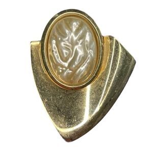 Vintage 80s Statement Earrings in a Gold Tone Metal and Faux Fresh Water Pearl make these Abstract Stud Earring a must have!