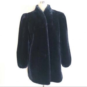 Vintage 80s Faux Fur Coat M/L Midnight Blue Soft Glamour Luxurious