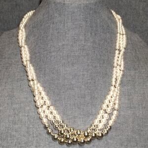 Vintage 80s Faux Pearl Necklace – 3 Strand Beauty