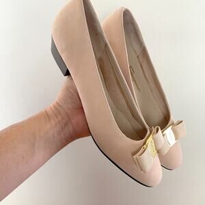 Vintage 80s Ferragamo Vara Bow Pumps Ladylike Old Money Pink Suede Nubuck Sz 7.5