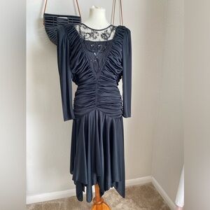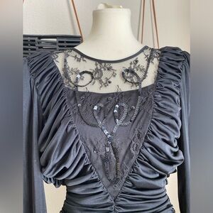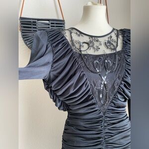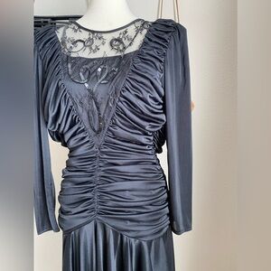 Vintage 80s "Filigree Collection" Sequin Lace Long Sleeve Ruched Dress, 8