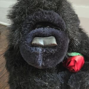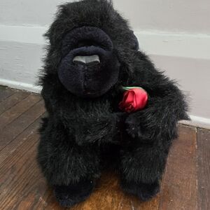 Vintage 80s Fine Toys Black Gorilla Rose Plush Stuffed Animal 12"