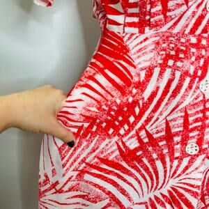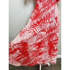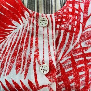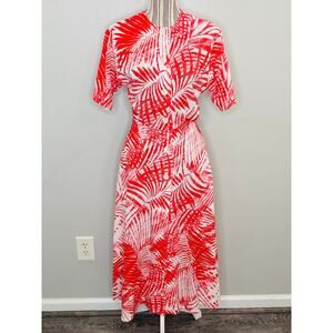 Vintage 80s Red Tropical Floral A-Line Button Up Maxi Dress Pockets Women Small Resort, Vacation, Casual