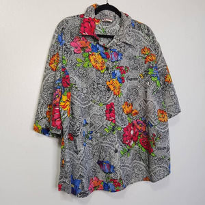 Vintage 80s Floral All Over Abstract Art Button Shirt Jodi Hills