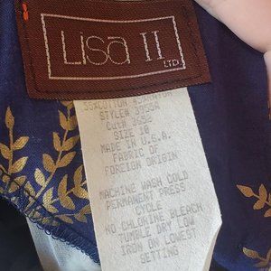 The dress is an original vintage piece from the 80s and is in excellent condition. It is a small size and has a flattering fit with an elastic waist. The blue color adds a pop of color to any outfit and the gold outline floral pattern adds a feminine touch. Don't miss the chance to own this unique and timeless piece.