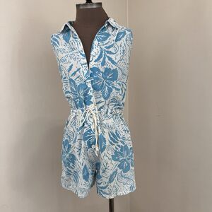Vintage 80s Floral Justin Allen Medium Romper Shorts Playsuit