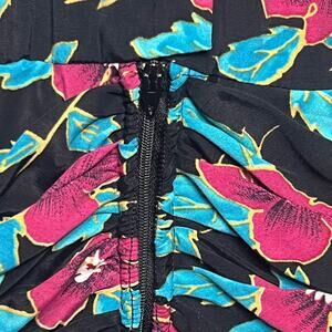 Vintage 80s Floral Peplum Dress Shirred Waist Button Back Size Medium