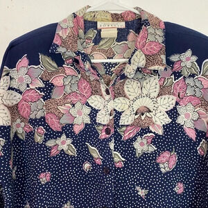 Vintage 80s Floral Printed Button Down Blouse Shoulder Pads Womens Plus Size 1X