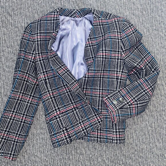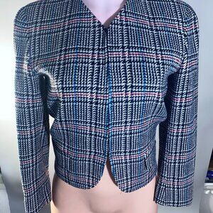 Vintage 80s French Design Cropped Tweed Blazer Jacket, ie Carolina Herrera Small