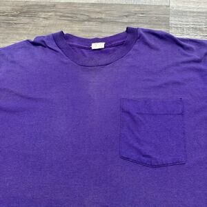 Vintage 80s Fruit of the Loom Golden Blend Purple Mens 2XL Blank Pocket Tee