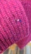 The yarn in this 100% wool sweater is a fuchsia pink with flecks of other colors throughout.