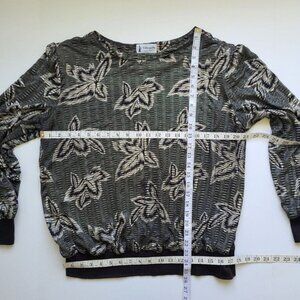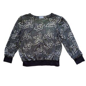 Vintage 80s Fun Funky Metallic Blouse Tag sz 18 Black Silver Leaf Slinky
