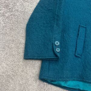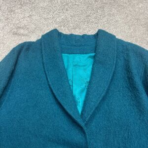 Vintage 80s Fuzzy Boiled Wool Blazer Jacket Womens Large Teal Blue Shawl Collar