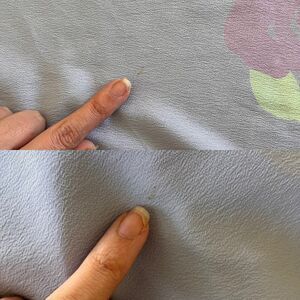 I found 2 tiny stains and horizontal run in the fabric, it nearly runs across the whole width of the front, but it is only 1-2 threads so not super noticeable in my opinion. The interior tag at the back of the neck is dettached on one side. See photos for flaws. Otherwise it is in great condition.