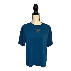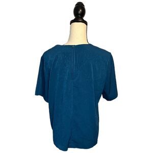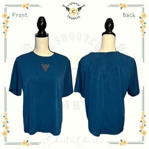 Vintage 80s G.W Graff Green Embroidered Blouse Top Short Sleeve Medium USA