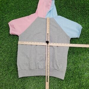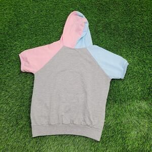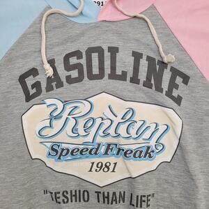 Vintage 80s Gasoline Hoodie Womens Medium 19x22 Gray Pink Blue