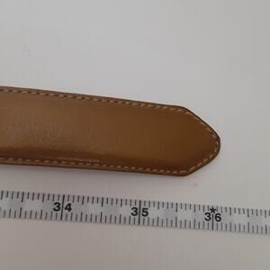 Vintage 80s Genuine Leather Belt Gold Metallic Rectangle Braided Buckle Womens M