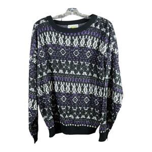Vintage 80’s Geometric Print Grandpa Sweater in a size large. Has ribbed neckline, cuffs, and hem. Measures approximately 22” armpit to armpit, and 25” in length. 90% acrylic, 10% cotton. In great condition.