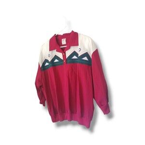 Vintage 80's Geometric Quarter Button Collared Pullover Top Sz L
